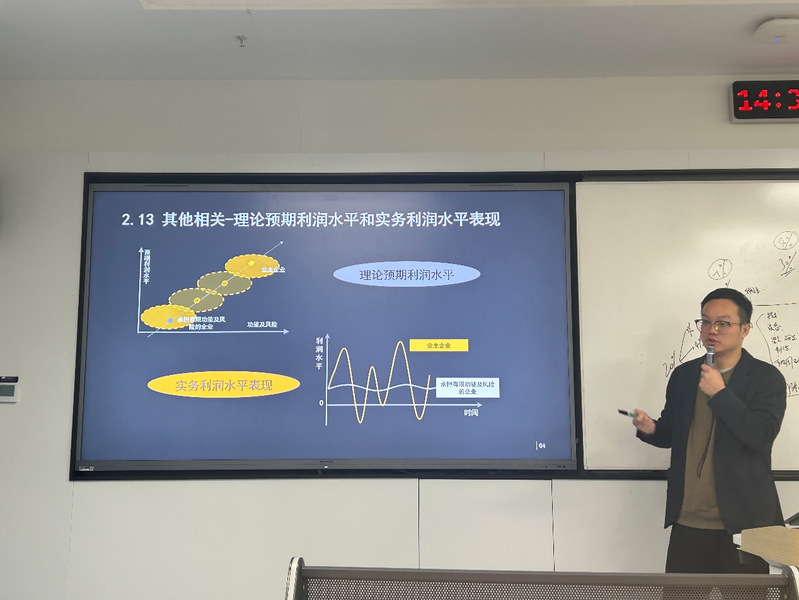 图3 方佳恩先生讲解理论预期利润水平和实务利润水平表现