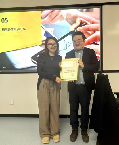 在结束了专业案例的深度剖析后,康笛副教授代表学院向孙耀东先生颁发了讲座证书,感谢他为浙大学子带来的宝贵实务经验。