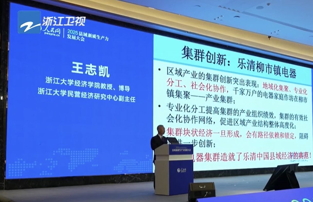 主旨演讲环节,浙江大学经济学院教授、博导,浙江大学民营经济研究中心副主任王志凯作“民营经济与县域新质生产力发展”主题分享,为县域突破传统发展瓶颈提供了新思路。