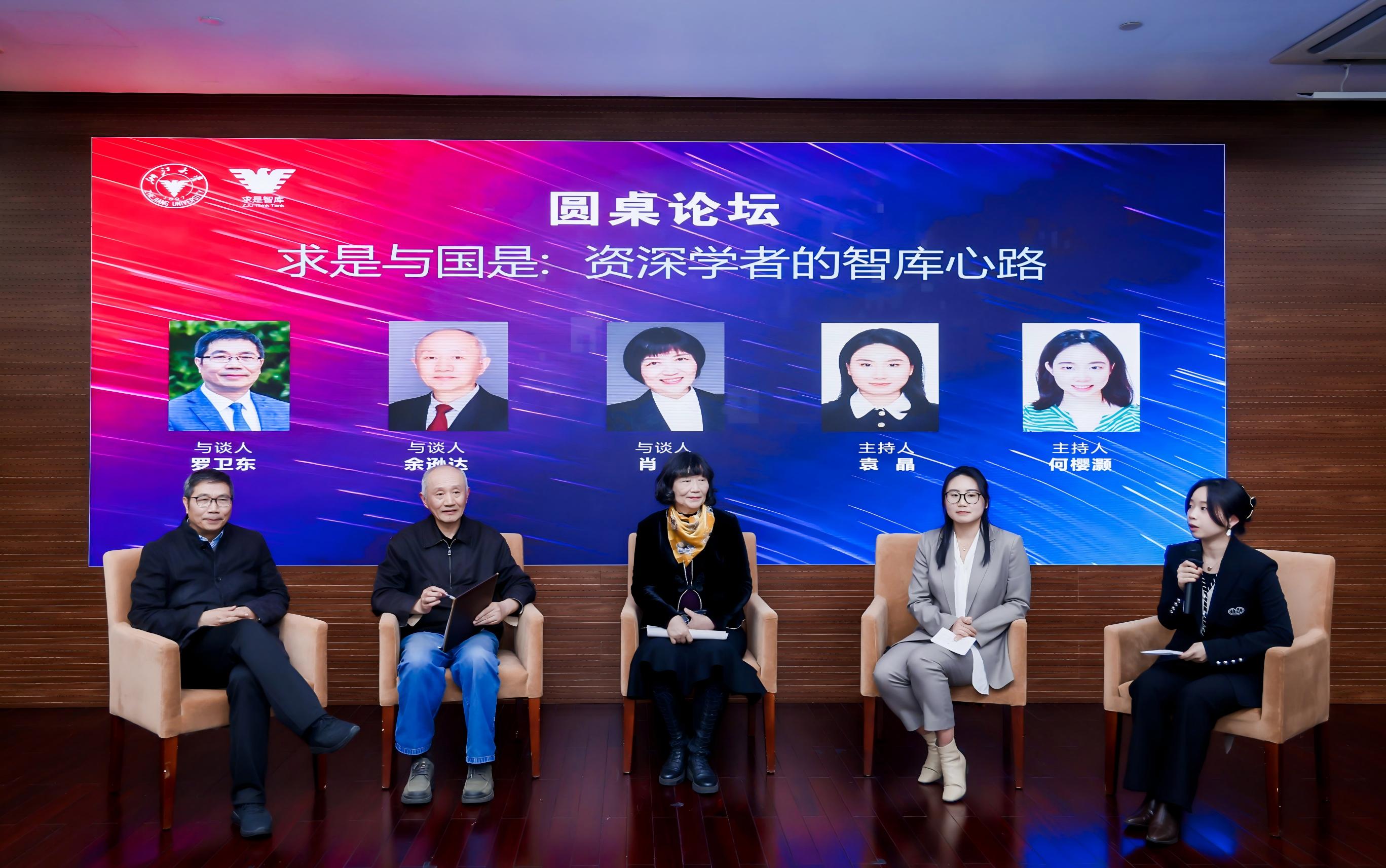 在圆桌论坛环节,浙江大学人文经济研究中心主任、经济学院教授罗卫东,经济学院教授肖文等就“求是与国是:资深学者的智库心路”主题交流智库研究历程和经验,并寄语青年智库学者。